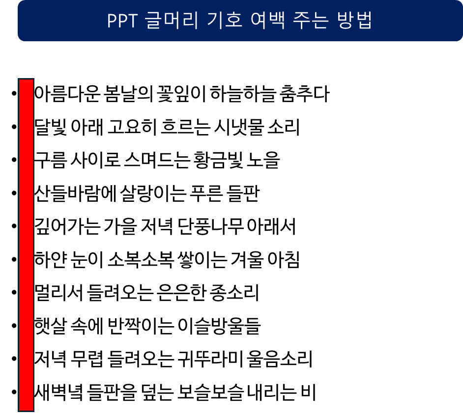 파워포인트 글머리 기호와 텍스트 사이에 여백 조정 방법