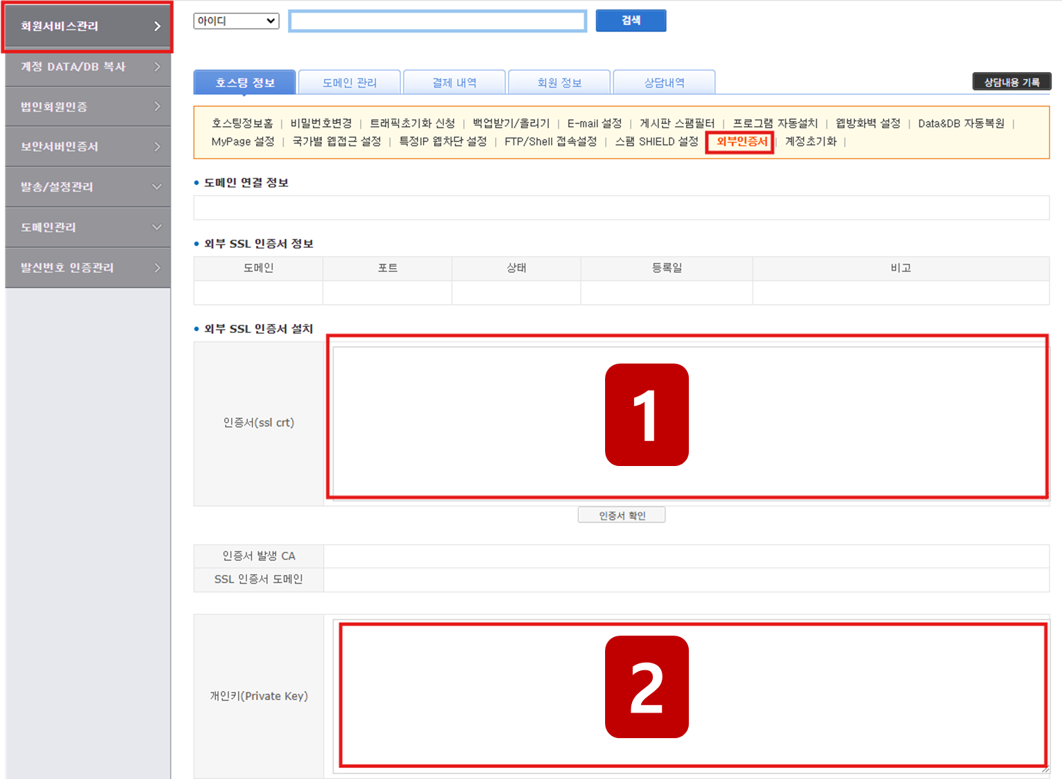 카페24(cafe24) 리셀러 호스팅 서비스에 외부 SSL 인증서 등록 방법