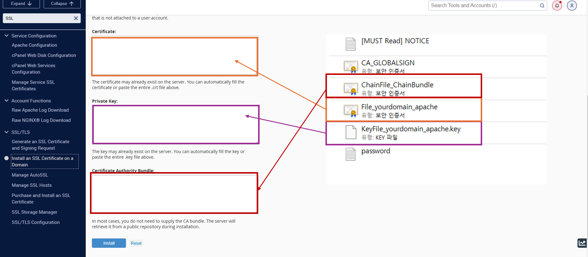 2. CPanel SSL(보안 인증서)설치 가이드 외부 SSL 설치