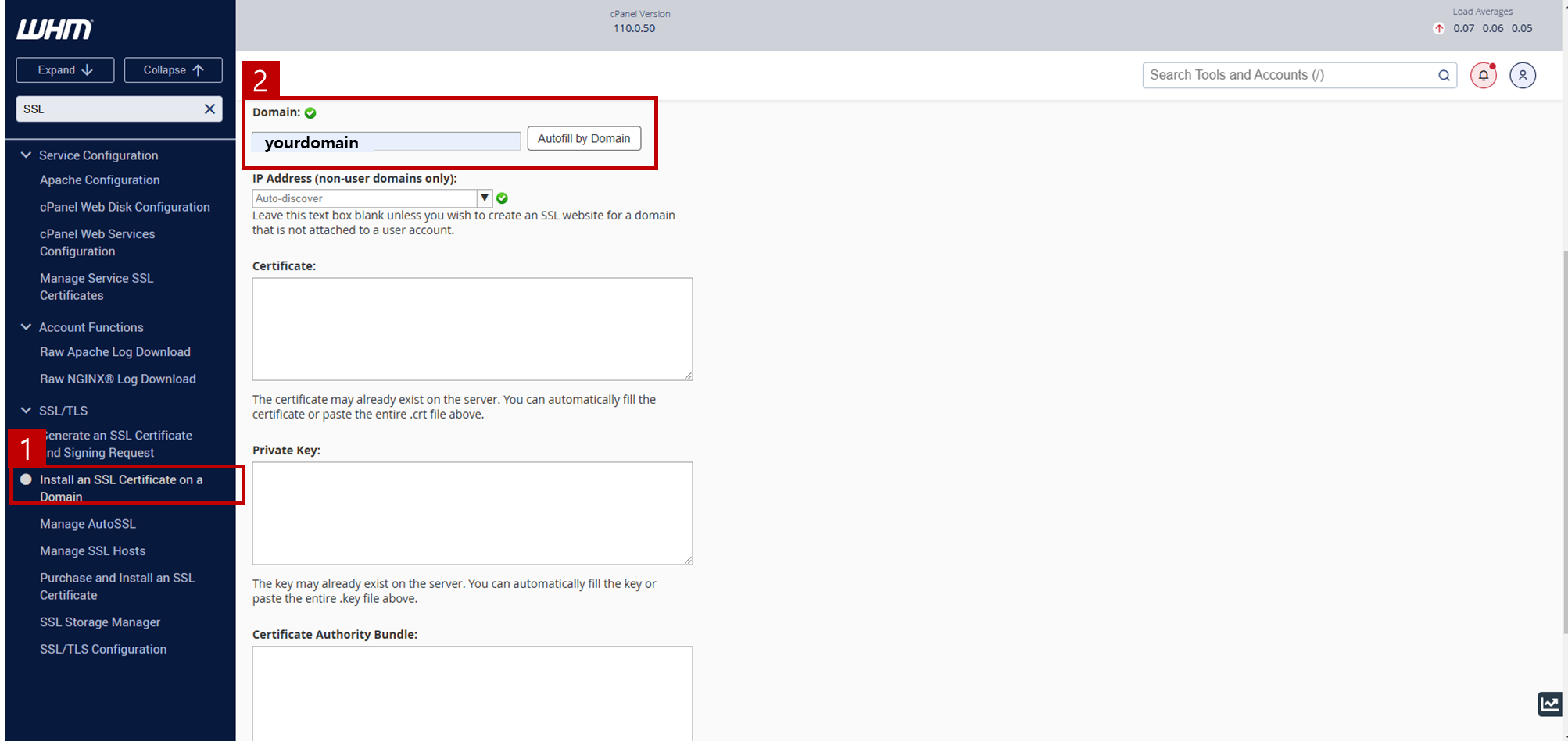 2.1 Install an SSL Certificate on a Domain 메뉴 접근
