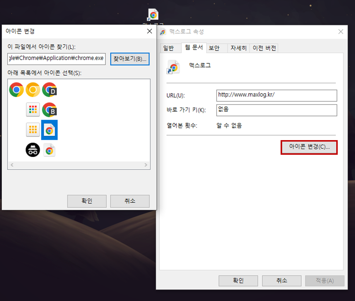 바로가기는 만들었지만 뭔가 브라우저 아이콘으로 되어 있으니 완성도가 떨어져 보인다.