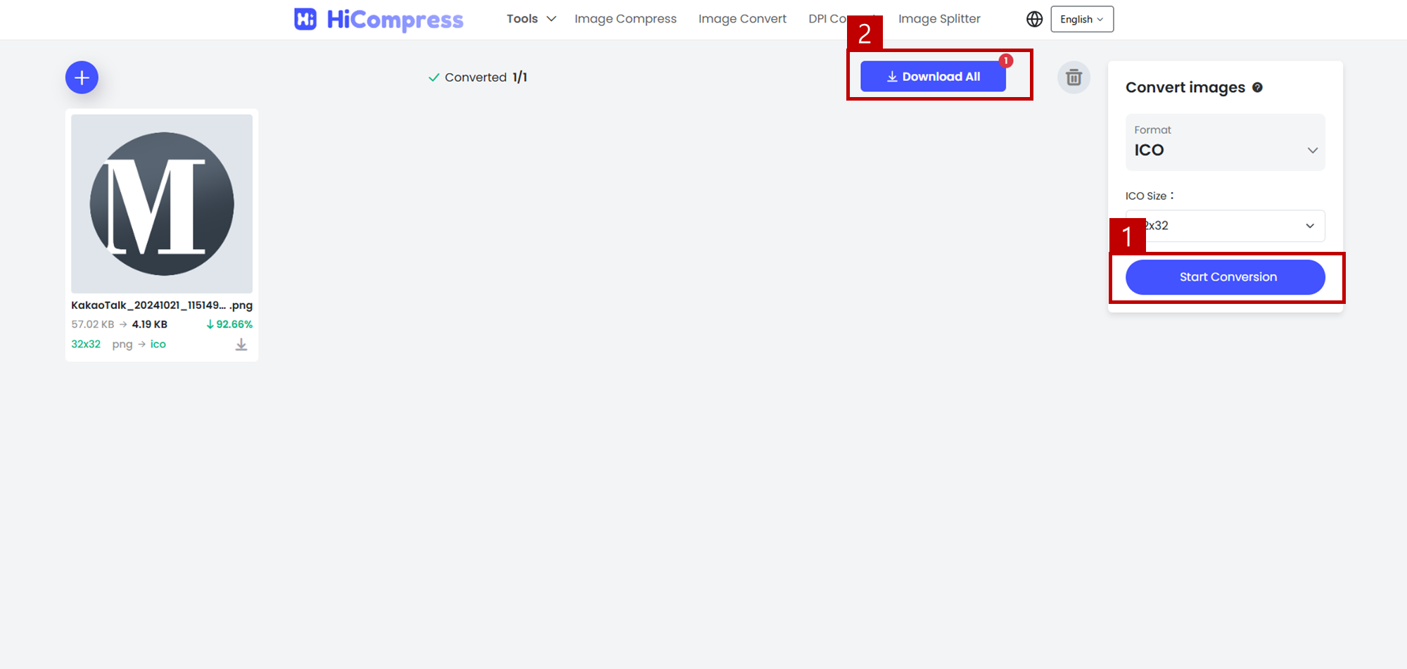 그럴때는 방법이 다 있다. 아래 있는 링크로 들어가서 내가 가지고 있는 이미지 파일을 ICO 파일로 변환해주자.