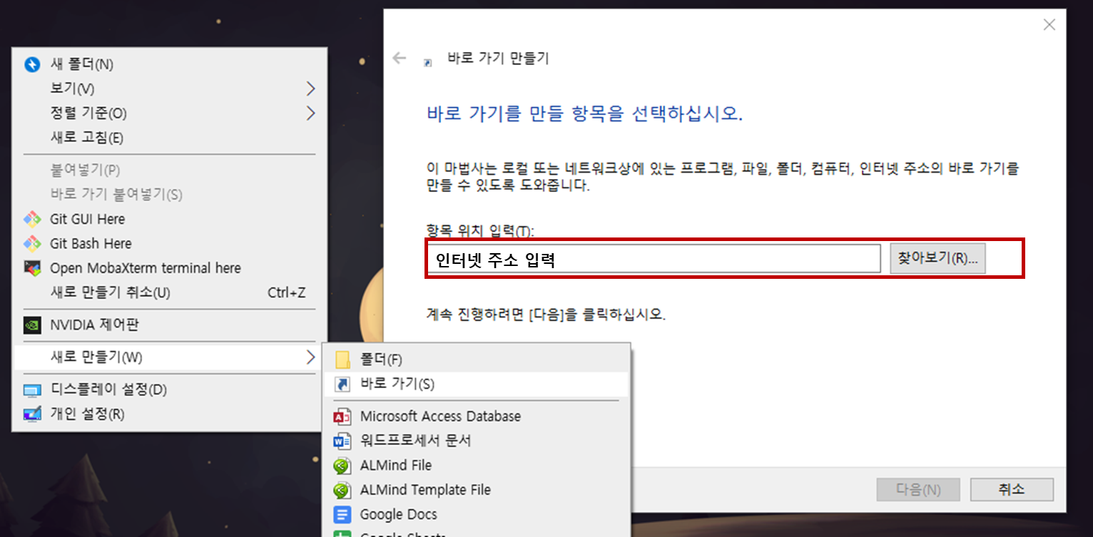 바탕화면에 특정 웹사이트 바로가기 만들기