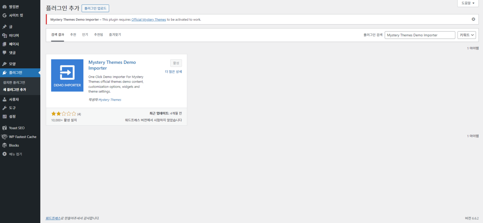 Mystery Themes Demo Importer : 말그대로 데모를 내 홈페이지에 Import 시켜준다.