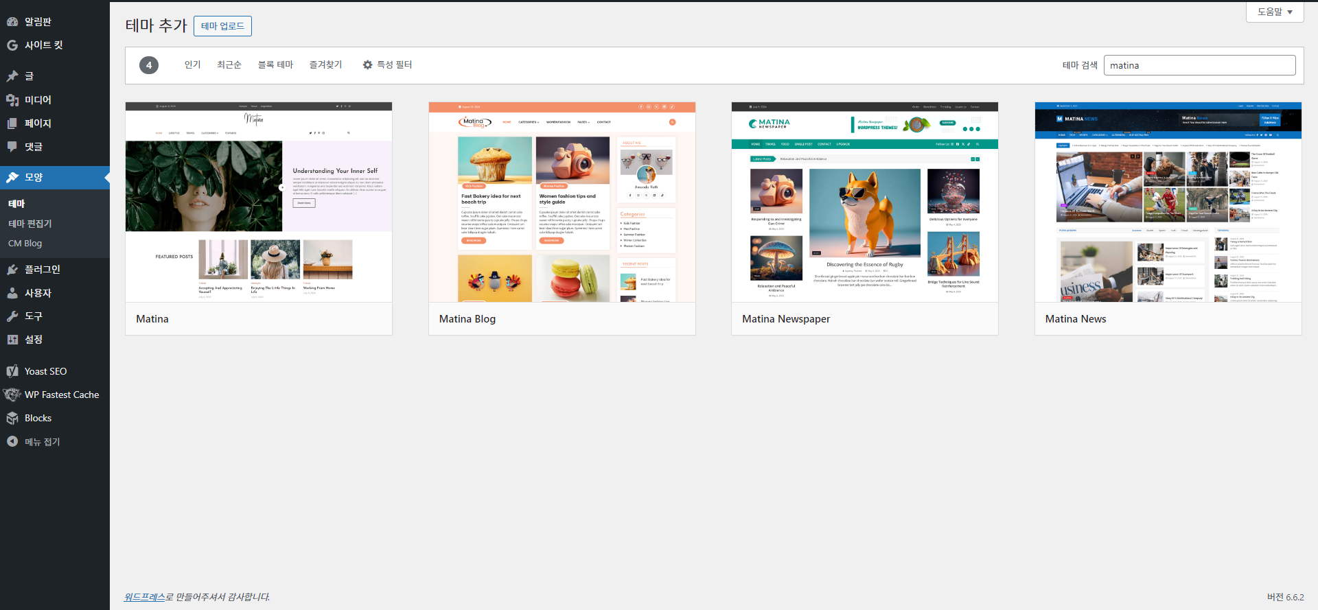 워드프레스 테마 적용