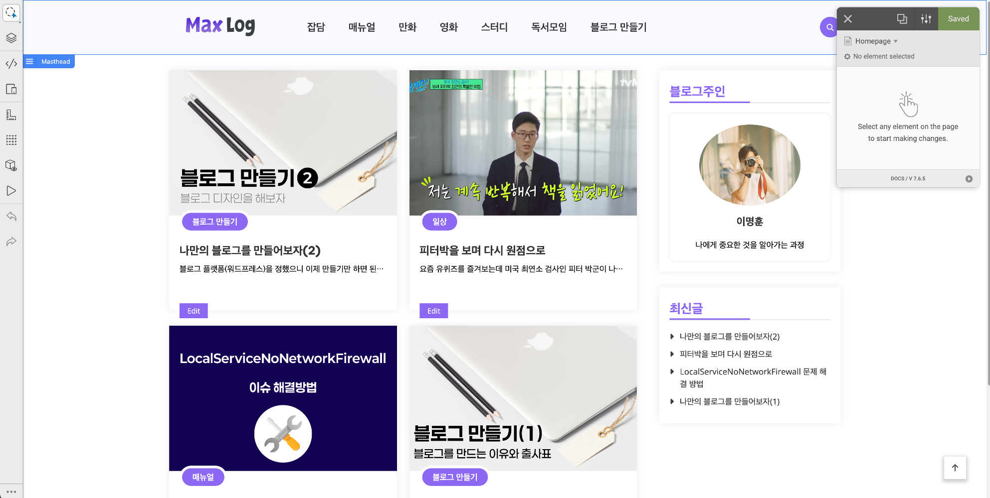 열심히 메인페이지 수정을 하고 매우 신나있었다. 내 블로그는 성장할꺼야! 이제 시작이야! 이러면서 연달아 글을 마구 써서 올렸다.