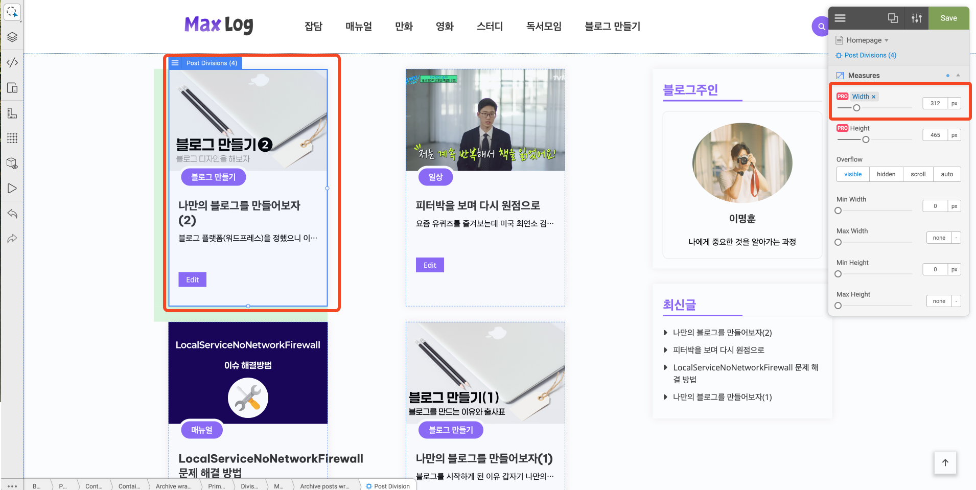 내가 수정하고 싶은 요소를 찍으면 오른쪽 위와 같은 화면이 나타난다.