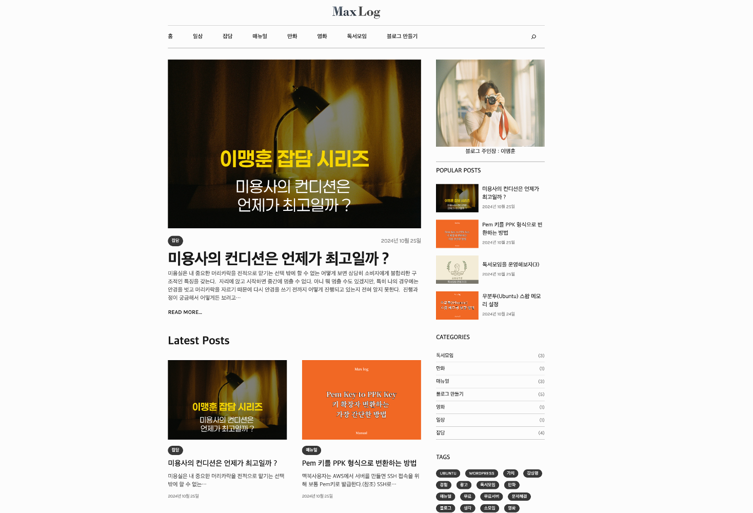 | 워드프레스 무료 블로그를 만들어보자(3) - 무료 블로그 서버 셋팅 (2) | 2024.11.18 |