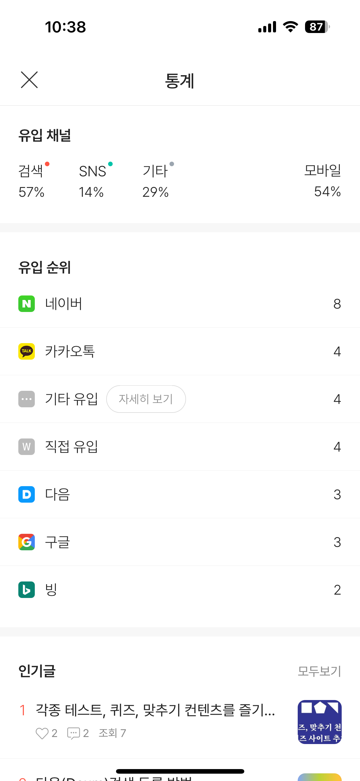 글의 개수가 늘어감에 따라 조회수는 우상향 했습니다. 그러던 중 접속 통계에 이상한 부분을 발견했습니다.