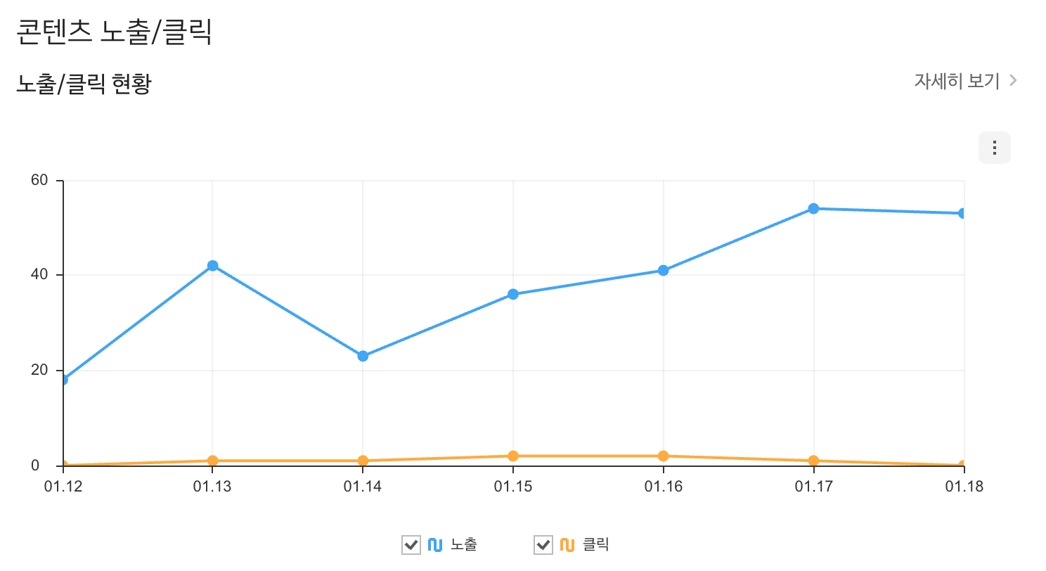 글의 수가 20개 언저리인 서브 블로그는 글이 많아지면 동일하게 노출 횟수가 올라갔습니다. 정말 이상하게 메인 블로그는 글 개수가 3배가 넘어가는데 노출은 10 이하를 유지했습니다.